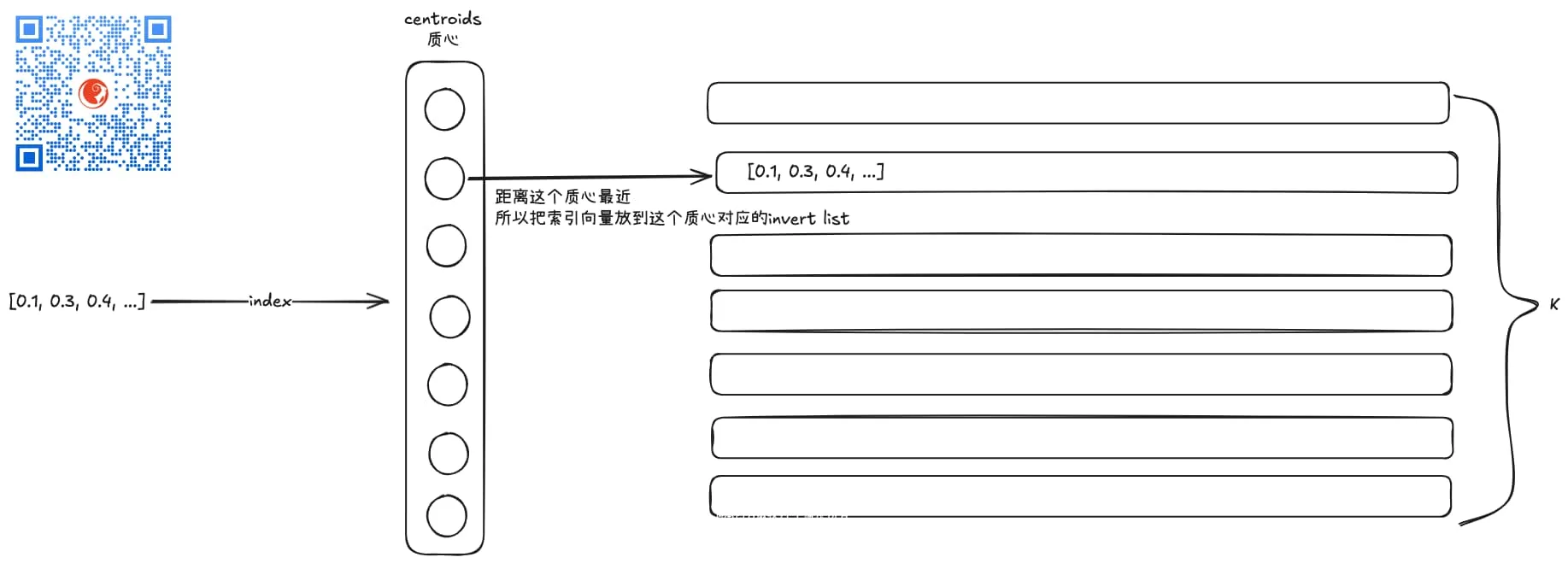 整个索引过程就像是对向量进行分类,把它们分别放到k个桶里去。